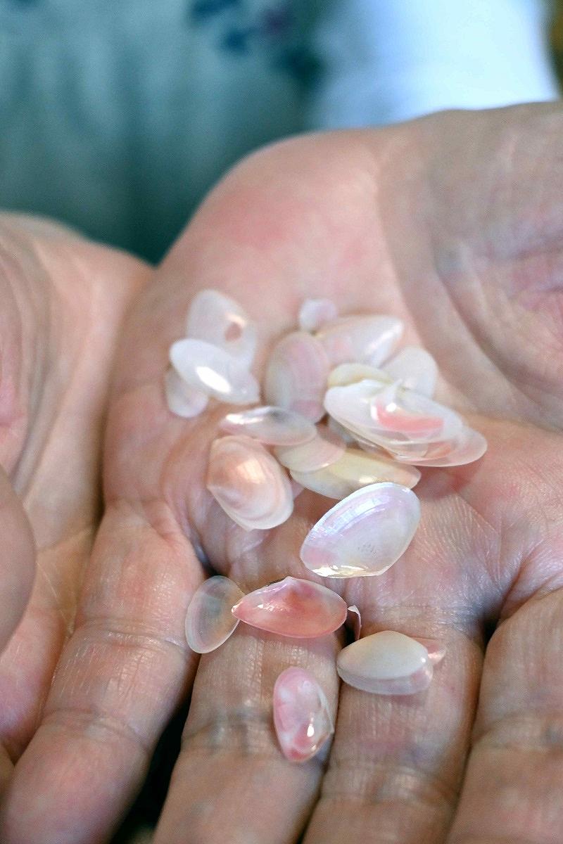 Takahashi still cherishes the shells of sakura shellfish she bought on a trip to Enoshima, Kanagawa Prefecture, while working in Yokosuka during the war.