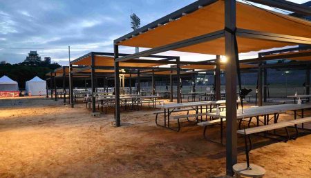 Hosted by the city of Osaka and supported by Suntory as an event alongside the 2025 Osaka-Kansai Expo, Osaka Gourmet Expo 2025 is taking place at Osaka Castle Park’s Taiyo-no-Hiroba through Oct. 13. Around 30 food and beverage booths are open from 11 a.m. to 10 p.m. Admission is free. In the evenings, there are live music performances and other shows on a stage inside the seating area.