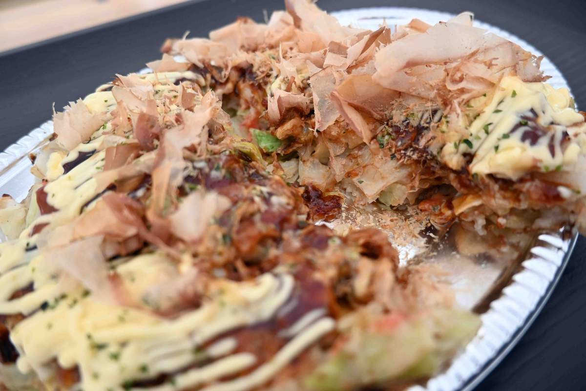 The first stall I visited was Bonne Qualite, where I ordered pork okonomiyaki. It’s the first food stall opened by the French restaurant Lumiere in Osaka. The restaurant’s famous chef designed the stall’s menu.