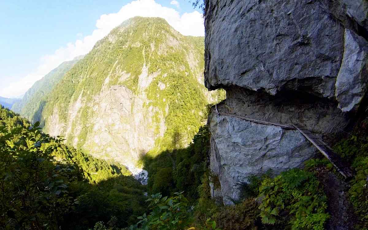 Both trails are closely tied to power development. Toyo Aluminum K.K. blazed the Suihei Trail in 1920 in search of suitable sites for hydroelectric dams. Carved by hand through the sheer cliffs of the gorge, the trail is shaped like a U and has paths ranging in width from 70 centimeters to 1 meter. The Former Nichiden Trail was opened by Nippon Denryoku before World War II.