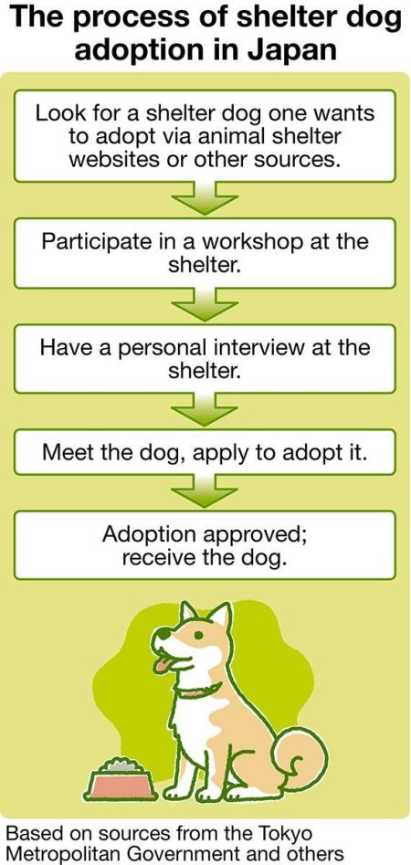 In general, you first look at websites and other places for a dog you would like to have, apply for the dog’s adoption and adopt the dog after going through several steps, including having an interview at the shelter and a “matchmaking” meeting with the dog. In some cases, an applicant’s wish is denied because the shelter believes that the person does not meet its requirements. For example, the Tokyo Metropolitan Government stipulates some conditions for those who apply to adopt shelter dogs in Tokyo.