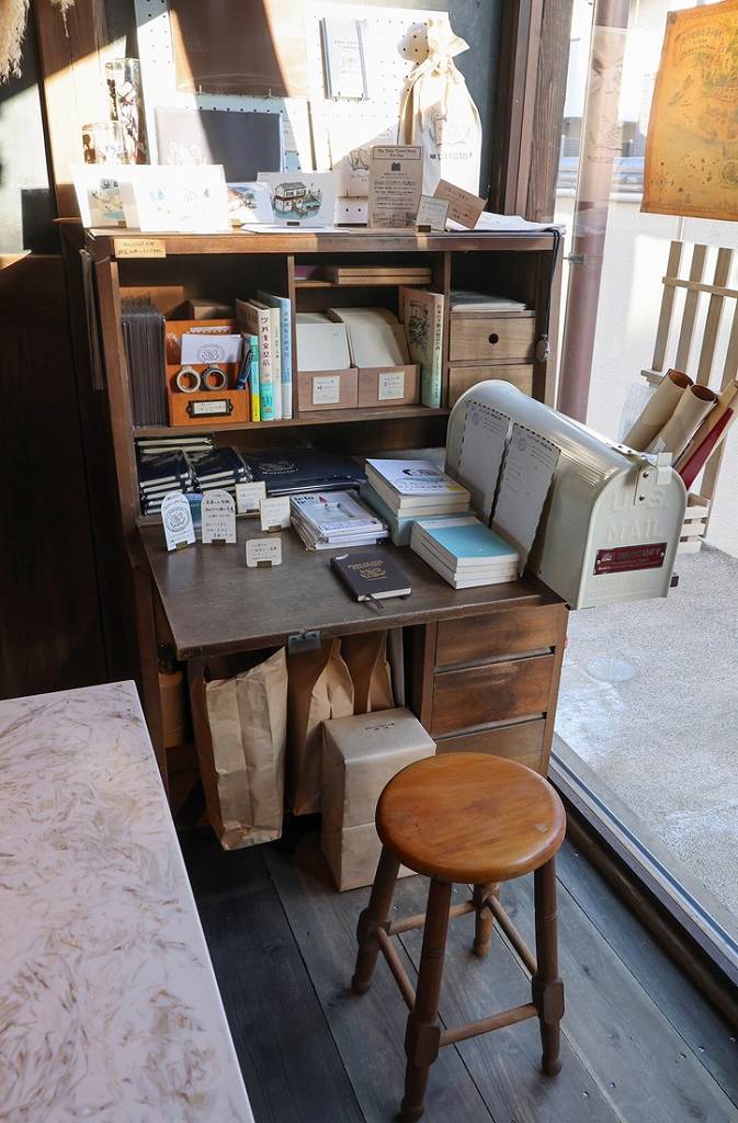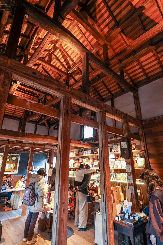 For the commercial complex, the Higashi-no-kura storehouse, built in 1916, was renovated first. It now houses Time travel books utouto, a shop selling books, stationery and other items themed around the concept of time. Cafe Apollon, which serves homemade baked sweets and specialty coffee, is also located in the building.