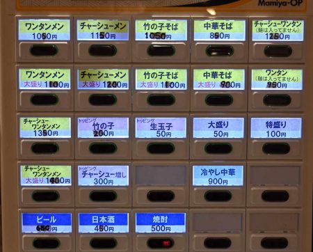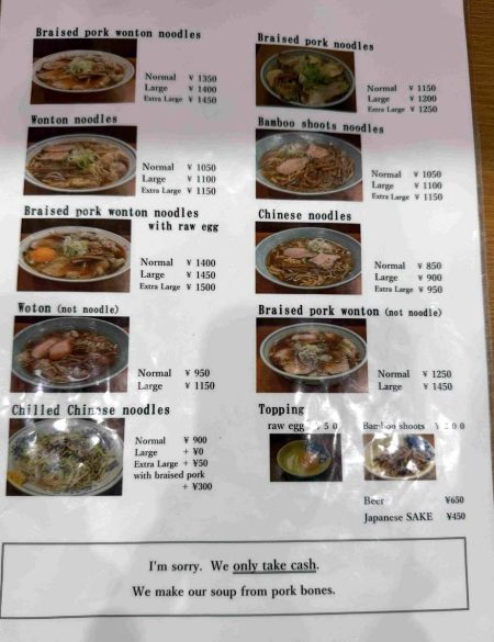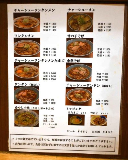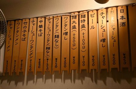 I was greeted by the beaming smile of Kazuhiko’s 71-year-old mother, Kiyoko. The basis of the menu centers around their chuka soba noodles for ¥850. They serve other options with different toppings such as wonton or chashu. When I mentioned that I also wanted to try their homemade wontons and pork chashu, Kiyoko said, “Then pick this one,” pointing to the button for the noodles with chashu and wonton for ¥1350 on the ticket machine. I bought it.