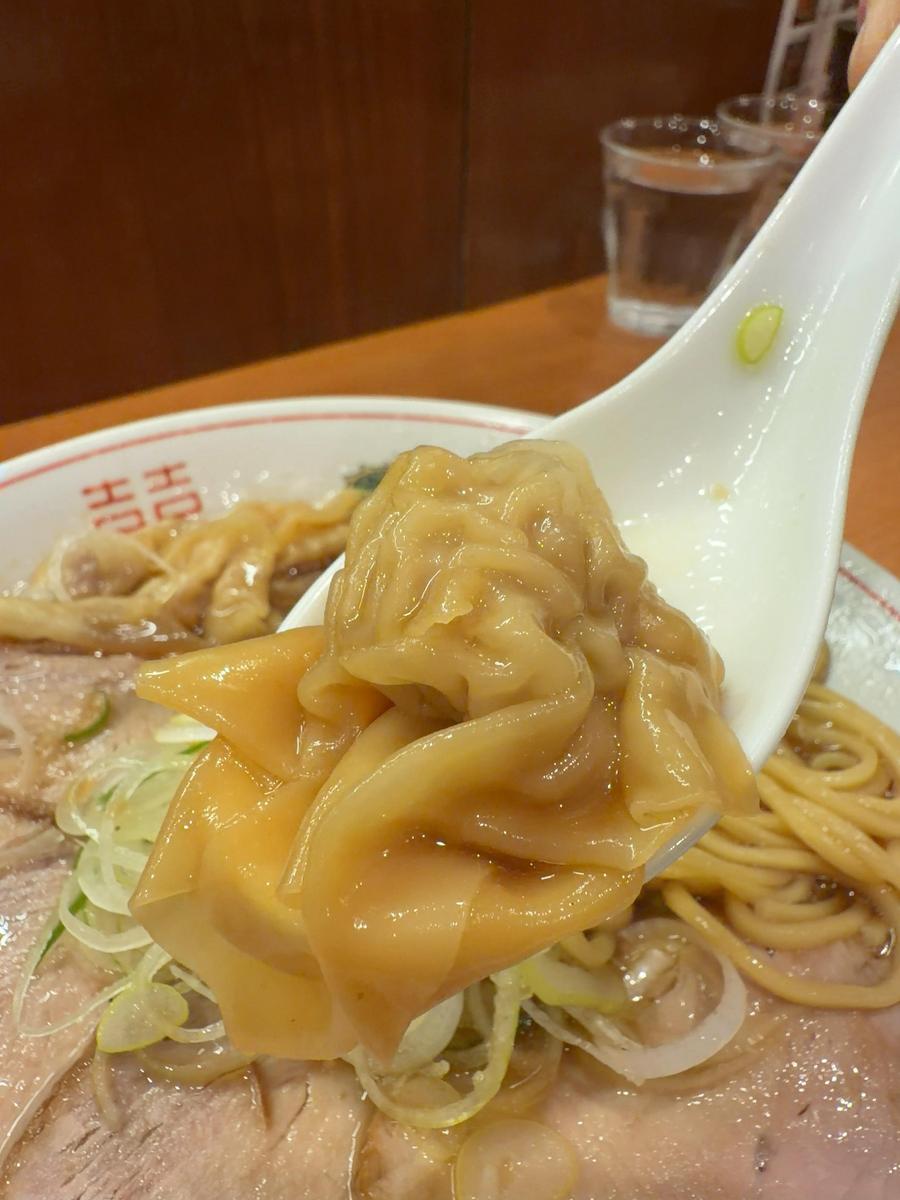 I was greeted by the beaming smile of Kazuhiko’s 71-year-old mother, Kiyoko. The basis of the menu centers around their chuka soba noodles for ¥850. They serve other options with different toppings such as wonton or chashu. When I mentioned that I also wanted to try their homemade wontons and pork chashu, Kiyoko said, “Then pick this one,” pointing to the button for the noodles with chashu and wonton for ¥1350 on the ticket machine. I bought it.