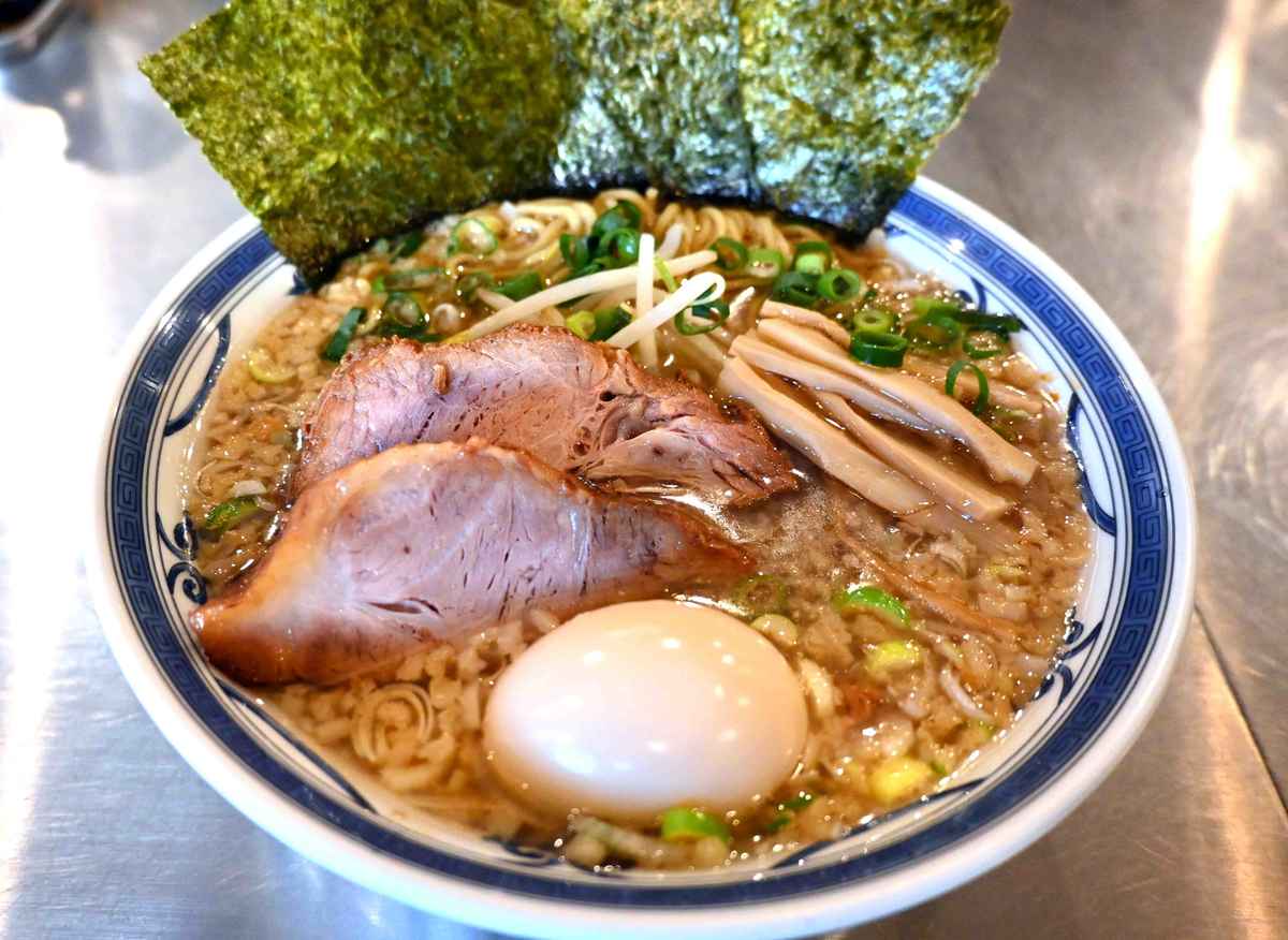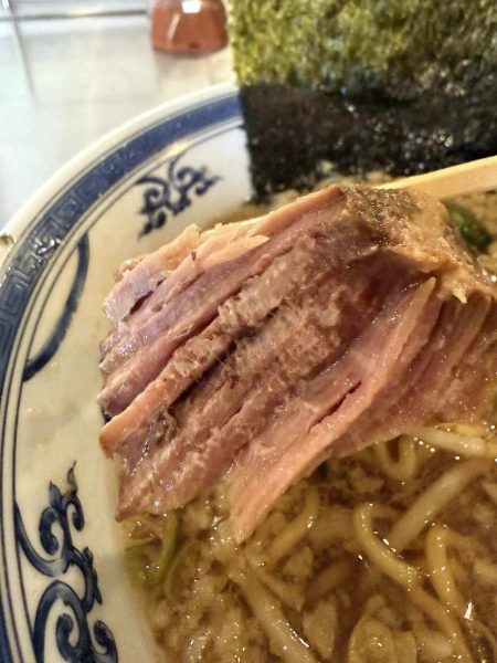 The broth, a blend of pork back fat, thick soy sauce and pork bone and seafood stocks, has a rich, deep flavor. The seafood stock, made using dried mackerel and dried sardines, accents the bowl with a faint aroma. It pairs perfectly with the medium-thick noodles made for the shop by Tokyo’s Asakusa Kaikaro, a noodle manufacturer with whom it has a long-standing business relationship. It’s a well-balanced bowl, and I finished it in no time, despite the generous serving.