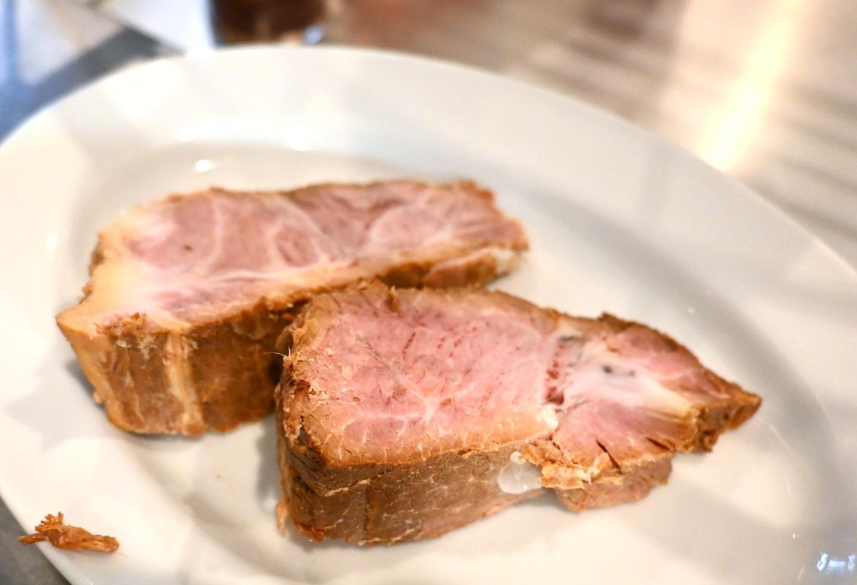 “Both pieces of chashu are made using pork shoulder loin — one is from a fatty cut, and the other is from a leaner cut,” explained Nishimaki. The fatty slice I ate first had a light, melt-in-your-mouth texture, while the leaner slice had a more substantial, meaty bite. However, since both were tender, eating them wasn’t at all tiring.