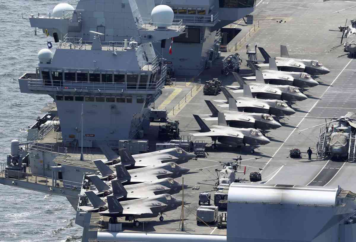 F-35B fighter jets on the flight deck of the HMS Prince of Wales