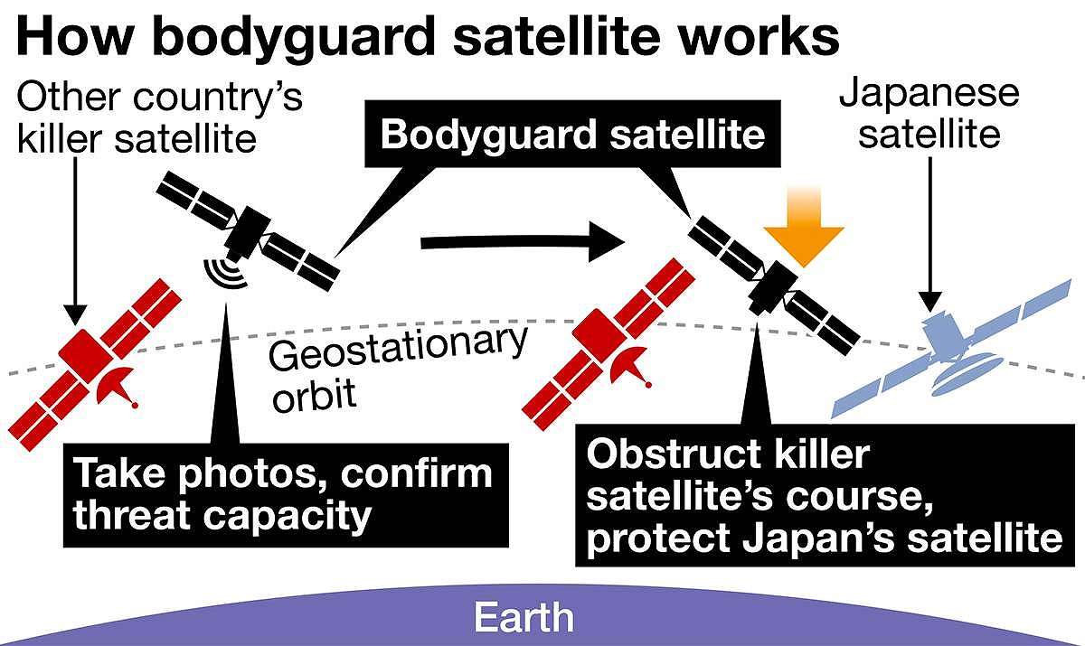 The ministry aims to equip bodyguard satellites with the capability to obstruct the course of killer satellites when they approach Japanese satellites to stop the former from getting close to the latter.