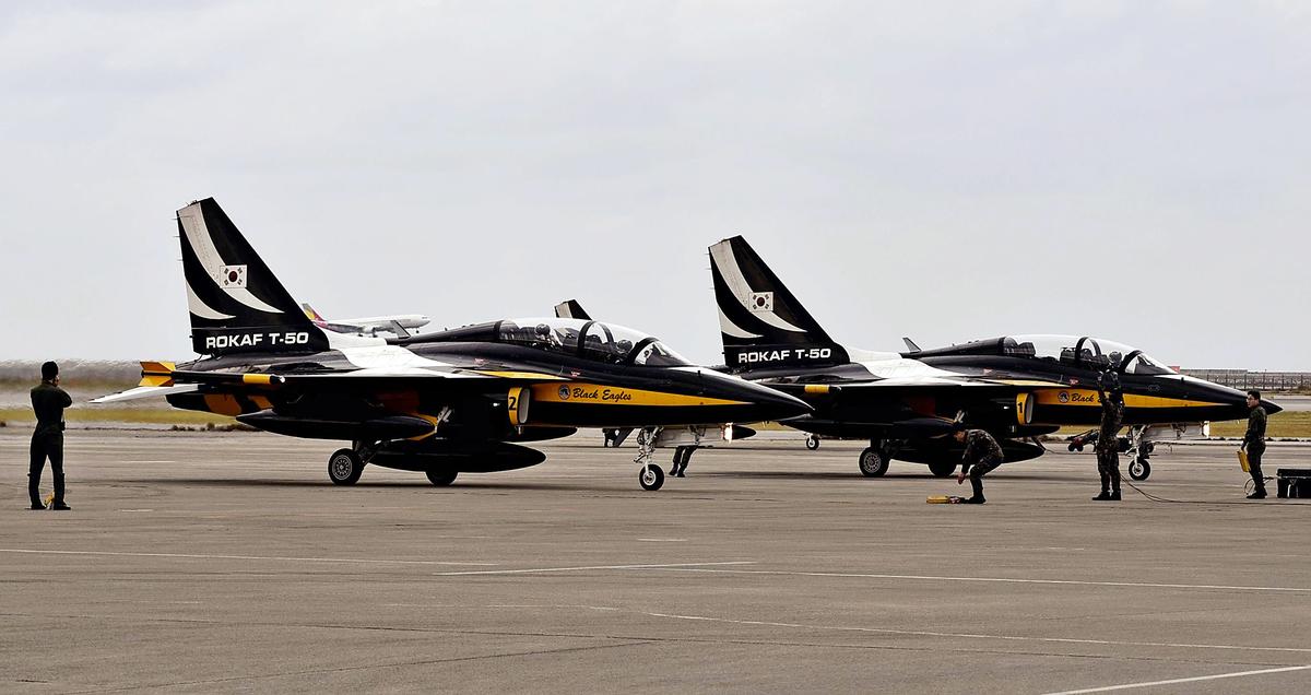 The Black Eagles of the South Korean Air Force are seen at the Air Self-Defense Force’s Naha Air Base in Naha on Wednesday.
