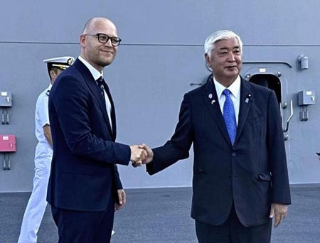 YOKOSUKA, Kanagawa (Jiji Press) — Japanese Defense Minister Gen Nakatani and Norwegian State Defe...