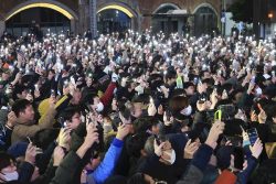 After the prayers, Kishida put flower decorations beside the names of candidates who were set to secure seats, but his expression remained somber.