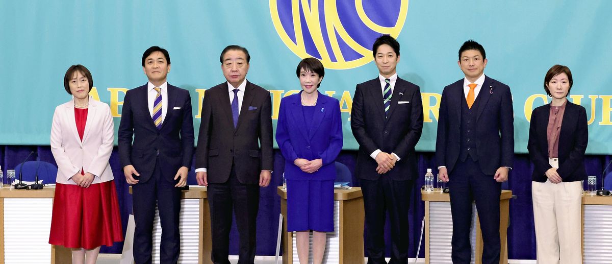 The participants were Prime Minister Sanae Takaichi, who also serves as LDP president; Yoshihiko Noda, coleader of the Centrist Reform Alliance; Fumitake Fujita, coleader of the Japan Innovation Party; Yuichiro Tamaki, leader of the Democratic Party for the People; Sohei Kamiya, leader of the Sanseito; Tomoko Tamura, chairperson of the Japanese Communist Party; and Akiko Oishi, coleader of Reiwa Shinsengumi.