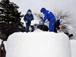 Kamakura Snow Huts Being Built for Upcoming Yokote Kamakura Festival in Akita Pref.