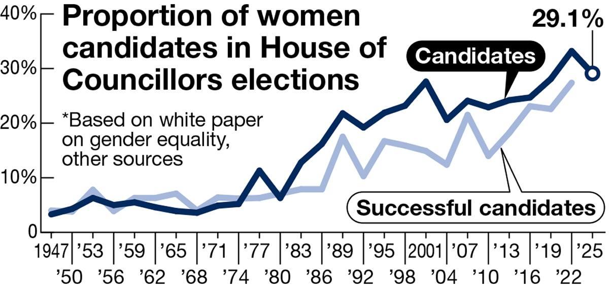 Upper House Election: Women Still Disproportionate in Diet 80 Years After Suffrage Win; Walls Remain High for Women to Participate in Politics