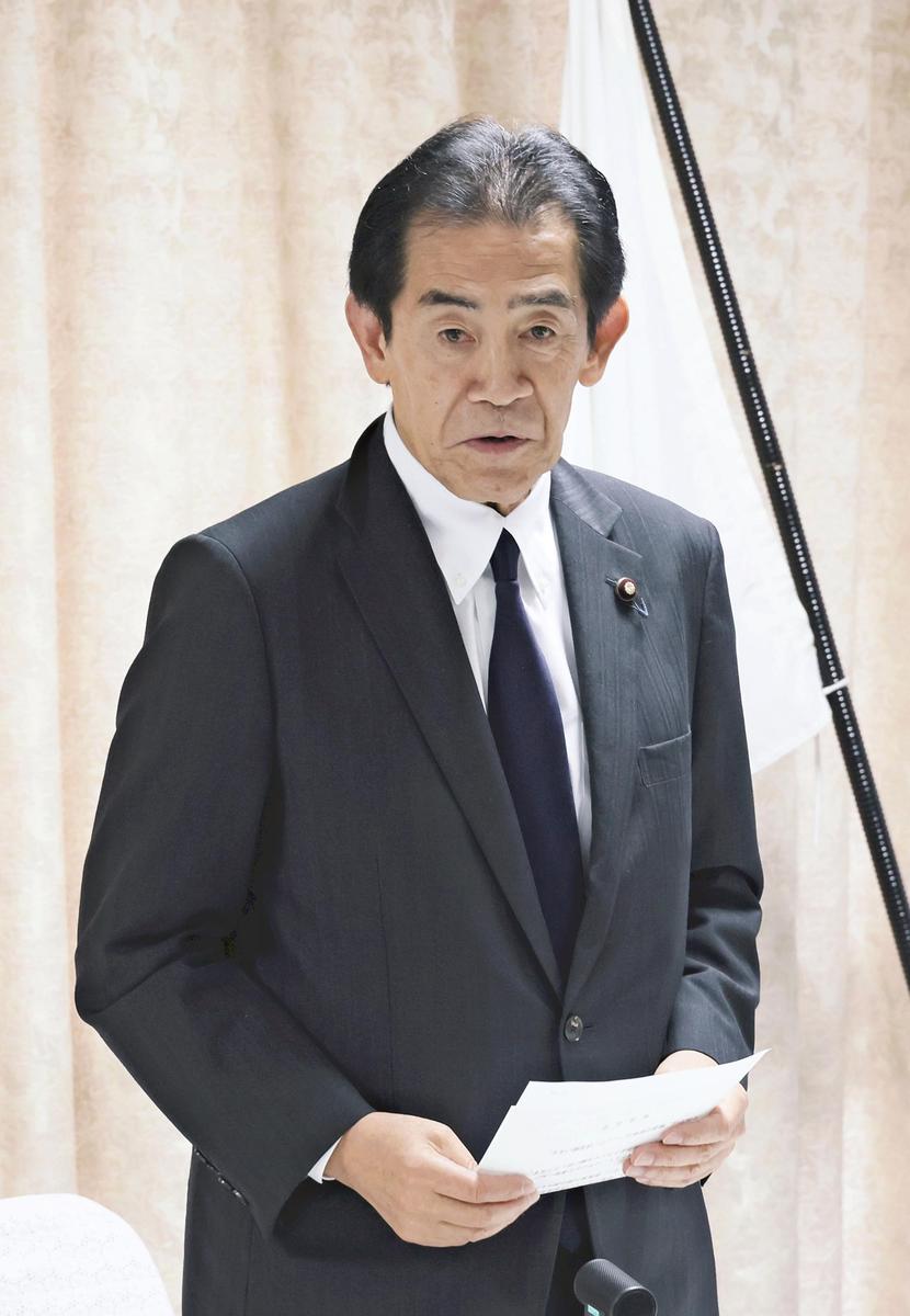 Ichiro Aisawa, chair of the LDP’s presidential election committee, speaks at a meeting of the committee at party headquarters in Tokyo on Tuesday.