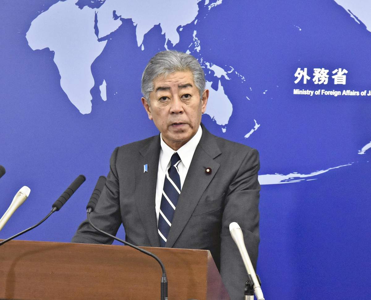 Foreign Minister Takeshi Iwaya speaks during a press conference in Tokyo in September.