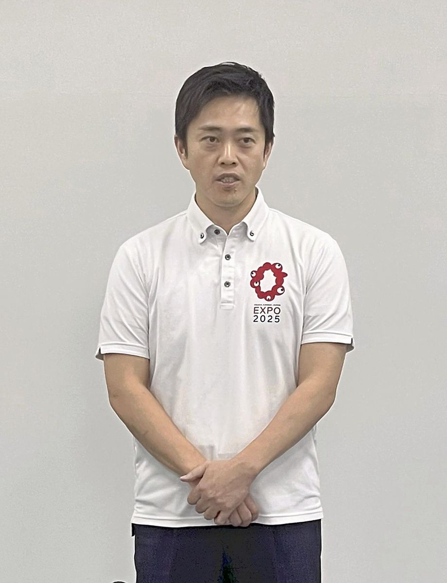 Japan Innovation Party leader Hirofumi Yoshimura responds to reporters at the Osaka prefectural government office on Friday.