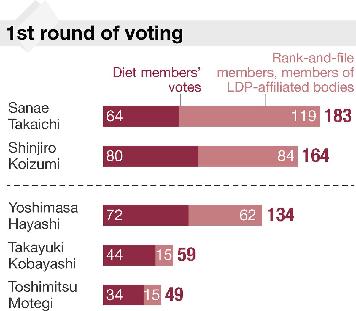 In the runoff, the LDP lawmakers will vote again, selecting one of the two candidates. The results of the runoff vote, which will determine the LDP’s new president, are expected to be announced at around 3:20 p.m.