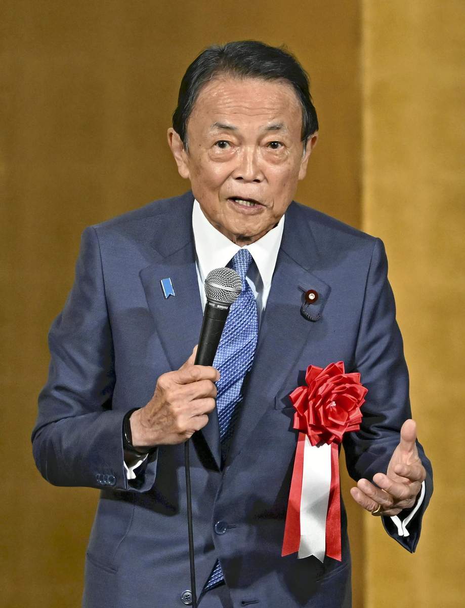 Taro Aso, then supreme adviser of the Liberal Democratic Party, speaks in Tokyo in July.