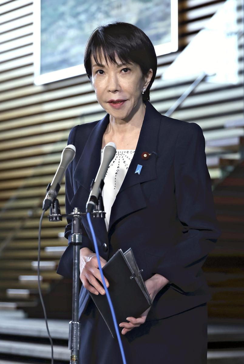 Prime Minister Sanae Takaichi speaks to reporters at the Prime Minister’s Office in Tokyo on Wednesday.