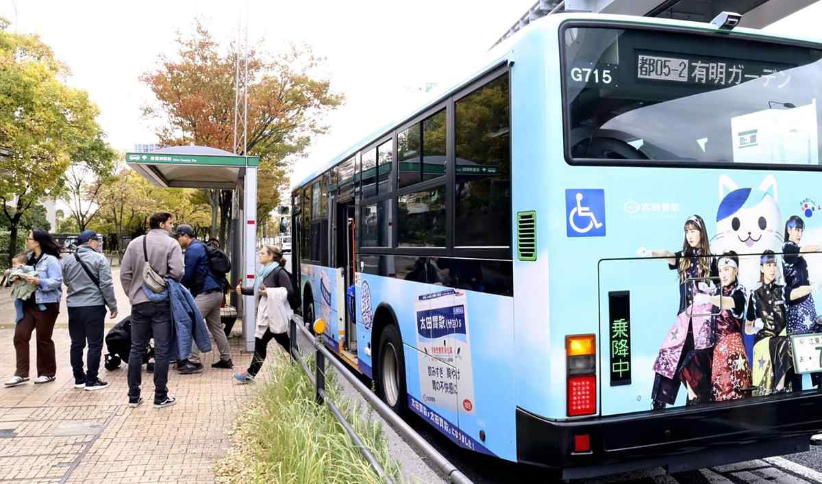 Foreign tourists are seen after alighting from a Tokyo metropolitan bus in Koto Ward, Tokyo, on Nov. 11.