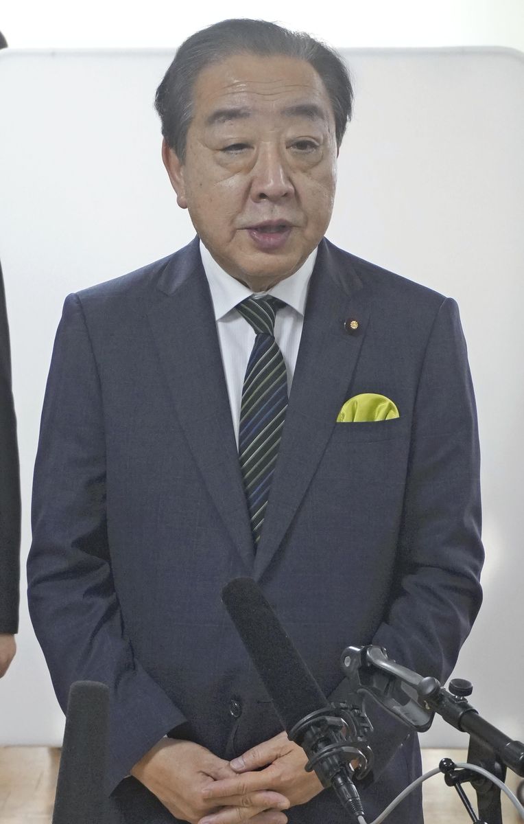 Constitutional Democratic Party of Japan leader Yoshihiko Noda speaks to media in Fukui on Tuesday.