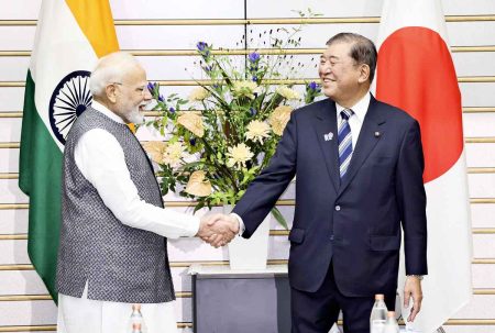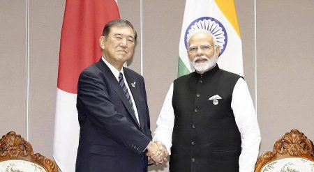 Prime Minister Shigeru Ishiba and visiting Indian Prime Minister Narendra Modi on Friday held tal...
