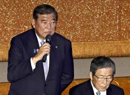 Prime Minister Shigeru Ishiba left out any mention of his “nuclear sharing” theory, in which Japa...