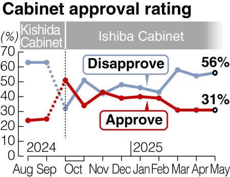 The approval rating for Prime Minister Shigeru Ishiba’s Cabinet stayed at 31% in a recent Yomiuri...