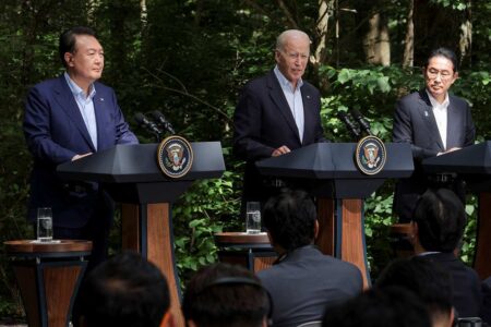 CAMP DAVID, Maryland (Reuters) – U.S. President Joe Biden and the leaders of South Korea and Japan a...