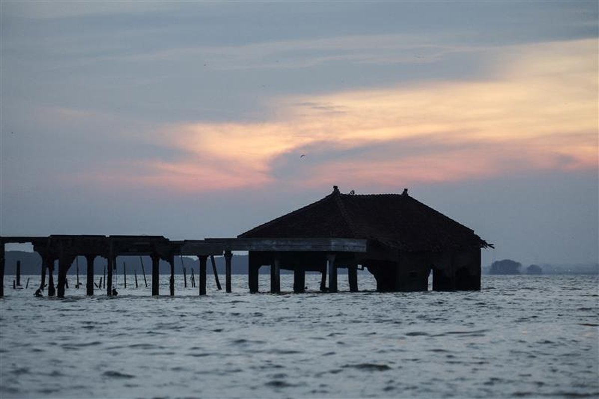 The nearest land is two kilometers away and the closest city, Demak, further still at 19 kilometers. The only way to get there is by boat.