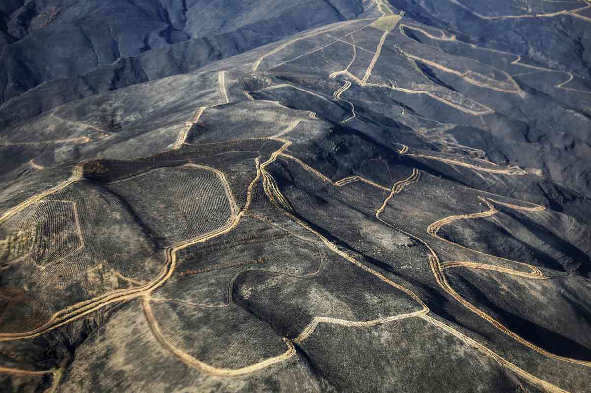 Thousands of charred hectares are seen in the mountains of Galicia, Spain, on Sept. 16.