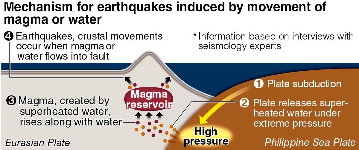 Significant crustal movements have been confirmed in the surrounding area, and experts have said that these may be connected to the movements of undersea magma or water.