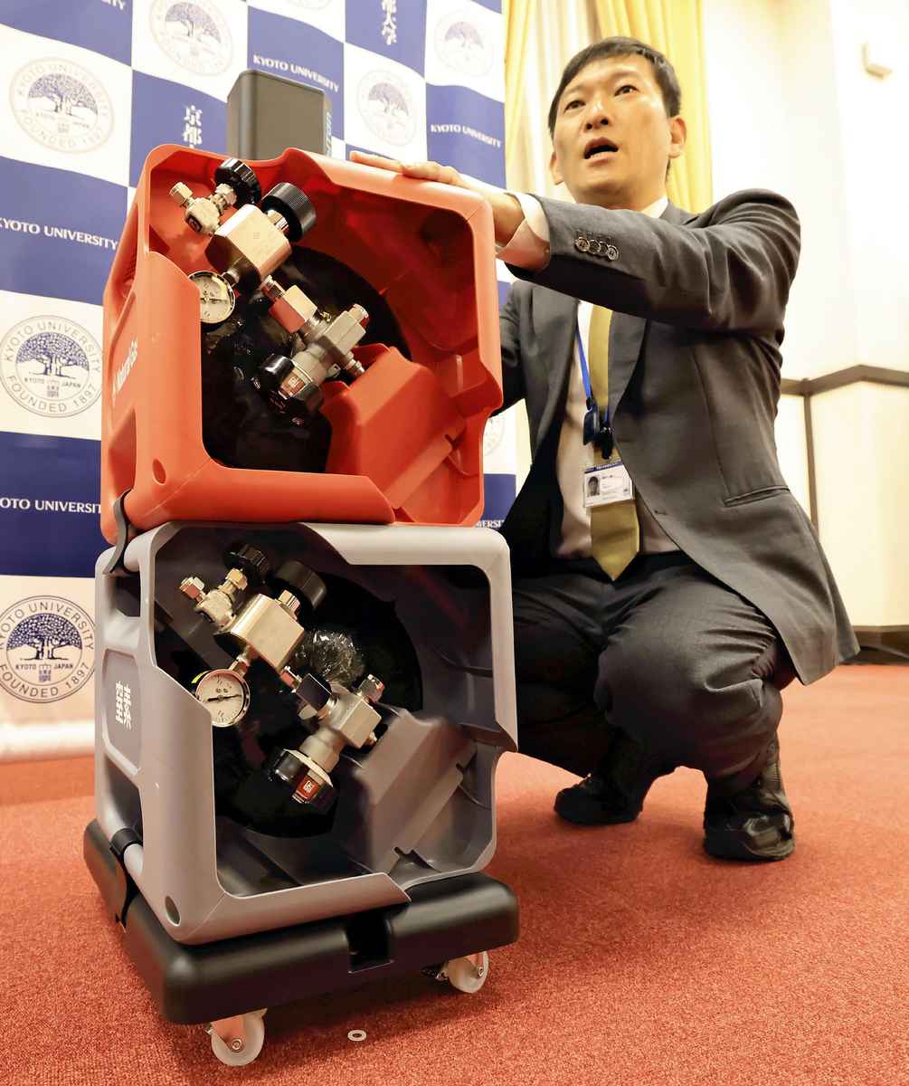 CubiTans, advanced high-pressure gas containers designed for efficient gas storage, are seen in Sakyo Ward, Kyoto, on Wednesday.