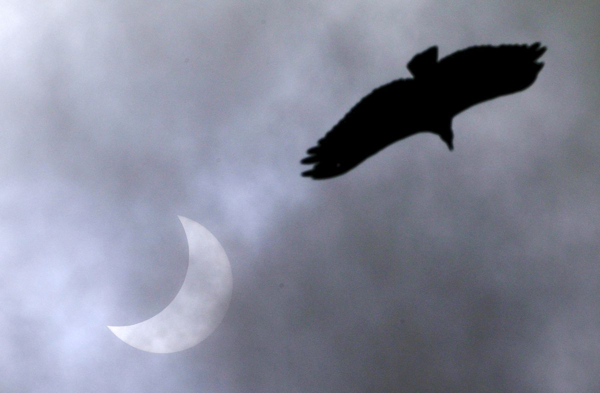 A bird is seen next to a solar eclipse in Porto Alegre, Brazil, on Dec. 14, 2020.