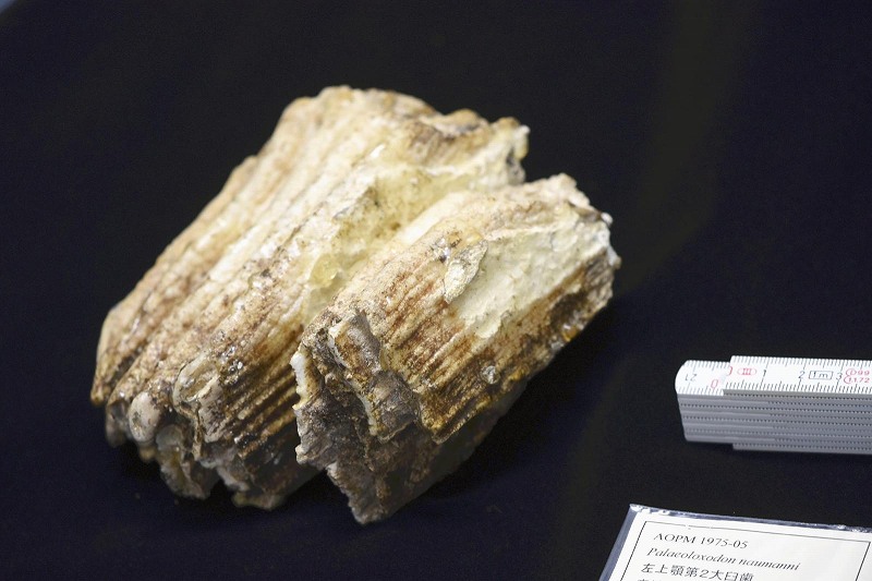A fossilized molar of a Naumann’s elephant excavated in Aomori Prefecture