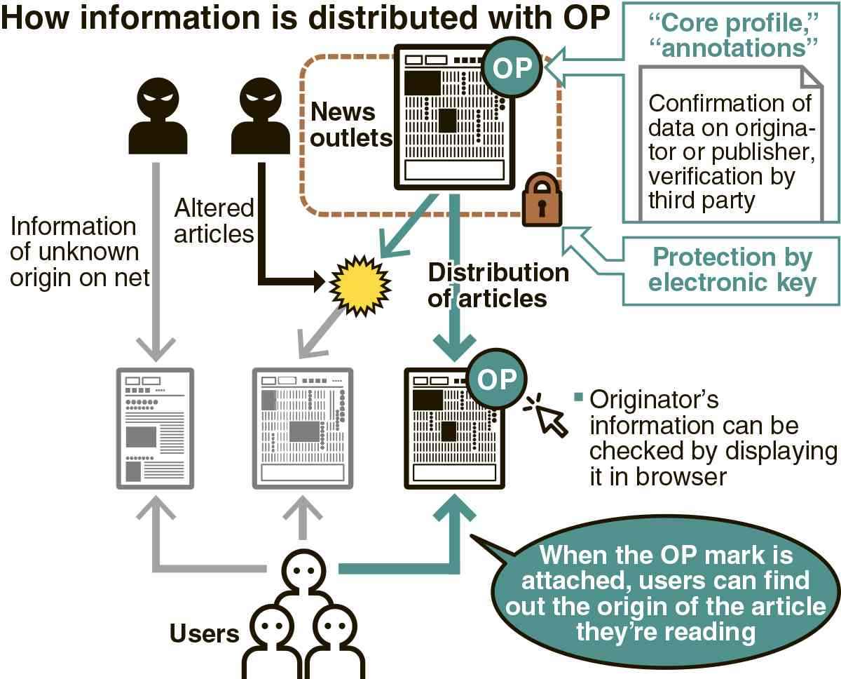 OP is a technology that enables users to confirm the authenticity of online articles and advertisements by electronically embedding each piece of content with source information confirmed by third-party entities. This allows users to confirm the content’s originator or publisher and that the information in it has not been altered.