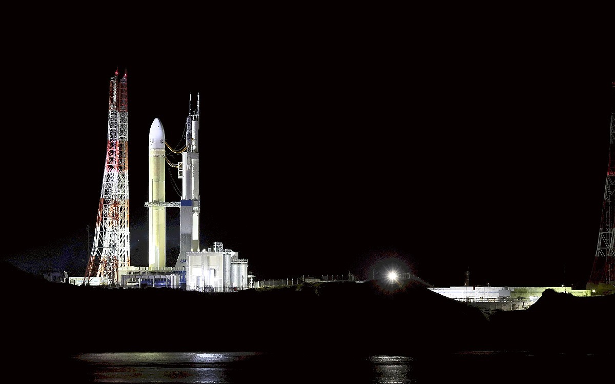 The eighth H3 rocket is seen at the Tanegashima Space Center in Kagoshima Prefecture on Tuesday evening.