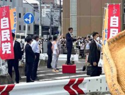 The venue for the street speech, part of the campaign for Sunday’s House of Councillors election, was in front of Kintetsu Railway Co.’s Yamato-Saidaiji Station, near a large commercial complex. The spot is well trafficked and has been used frequently in the past for campaign speeches.