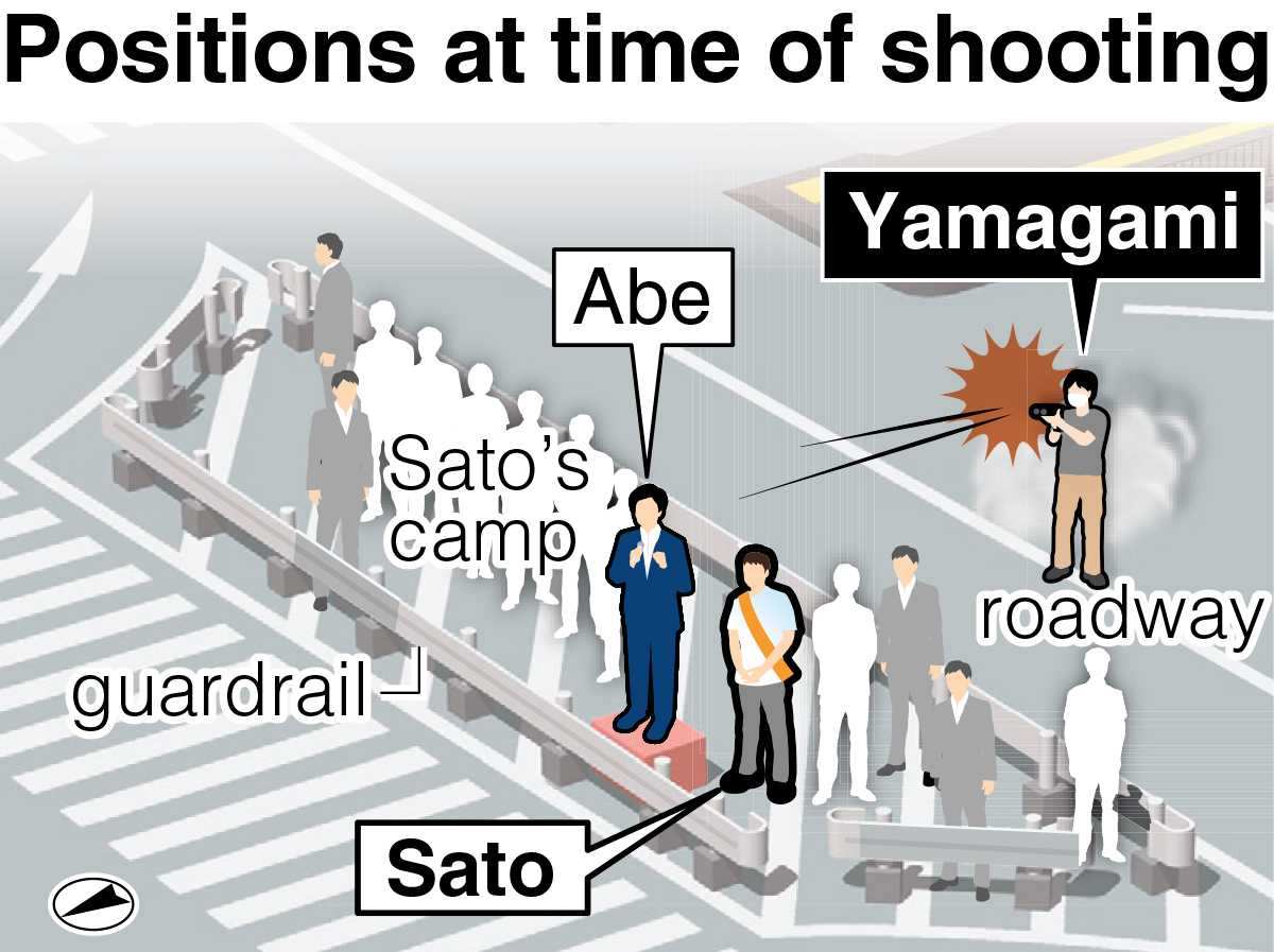 Sato described the moment, stating that he twice heard “a sound I had never experienced before.” He explained that when the first shot happened, he went into a crouching position, and after the second he turned around and saw Abe collapsed on the ground with his eyes open.
