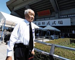 Attending a memorial service held on calm waters, Hayakawa said his mind was filled with the faces of his fellow soldiers who had been killed in the bombings and lost at sea. Overwhelmed by the moment, he called out to them: “Brothers, I’m here!”