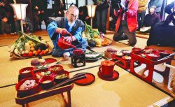 Half-Naked Men Pound Mochi against Ceiling at Temple in Yamagata ...