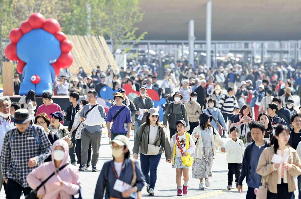 OSAKA — The 2025 Osaka-Kansai Expo venue in Konohana Ward, Osaka, was crowded with people on Saturday, which marked the start of the Golden Week holidays, even though the days off are interspersed with workdays this year.