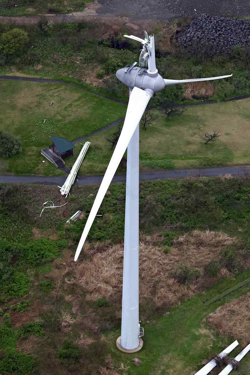 The damaged turbine belonged to a single-unit wind power station operated by a Tokyo-based company. According to the company, its three propellers were each 41 meters long and had been installed about 80 meters above ground level.