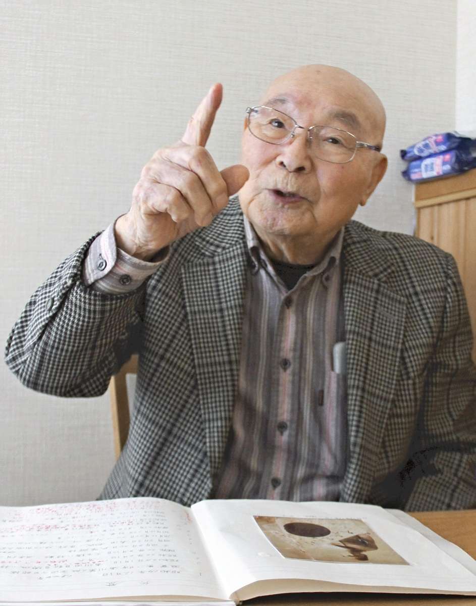 Masao Saito, 99, who now lives in Sapporo, was one of the internees. The severe cold would freeze even their eyelashes. At night, they had to endure icy cold and hunger in the drafty camps. “We didn’t have anything to enjoy, so we eased our souls with the songs,” he recalled.