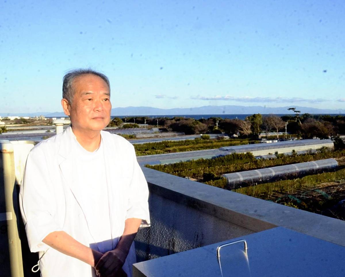 Yasushi Zaitsu, the head of Shizuoka Hirono Hospital’s nursing care medical clinic, about 400 meters from the sea, poses for a photo in Shizuoka.