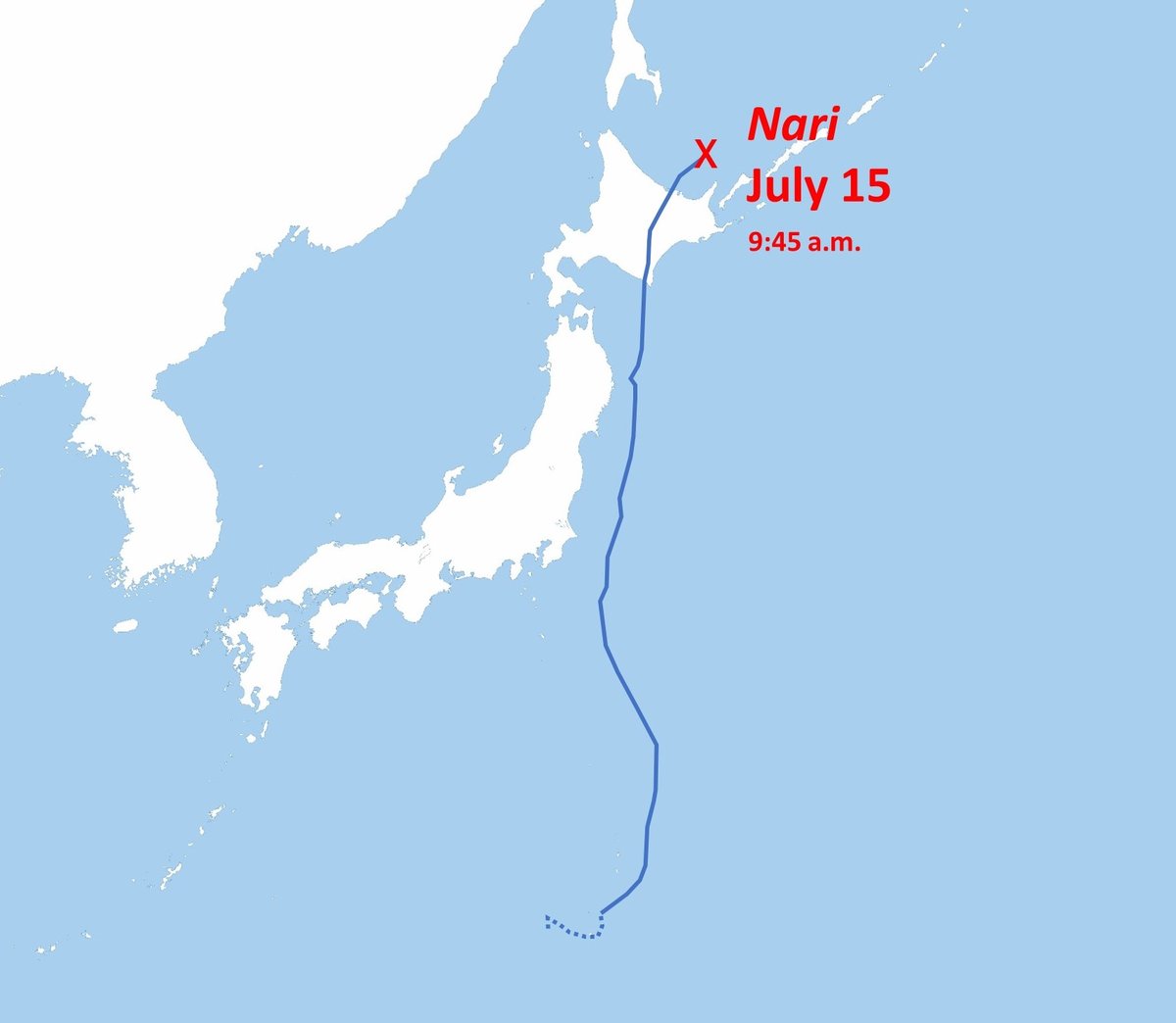 Tokyo (Jiji Press) — Typhoon Nari crossed Hokkaido, the northernmost main island of Japan, on Tuesday morning.