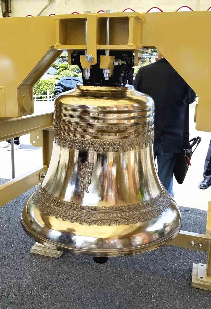 The new bronze bell, measuring 66 centimeters tall and 80.7 centimeters in diameter, was made by James Nolan Jr., 62, a professor at Williams College in the United States, who solicited donations for the restoration project. He is the grandson of a doctor who participated in the Manhattan Project, a U.S. program for the research and development of atomic bombs.