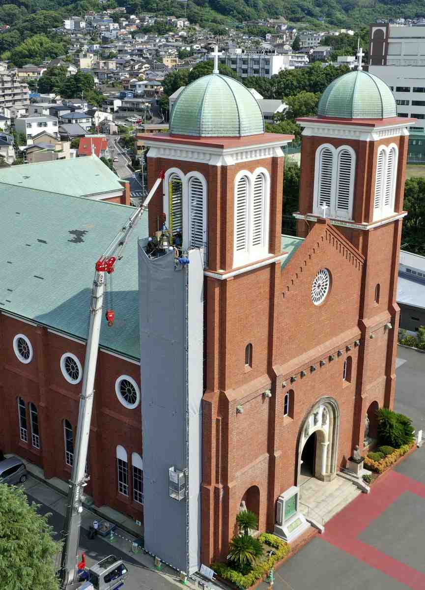 NAGASAKI — A new bell has been installed in Urakami Cathedral’s twin bell towers, with the previous one having been destroyed in the blast of the atomic bomb dropped on Nagasaki in 1945.