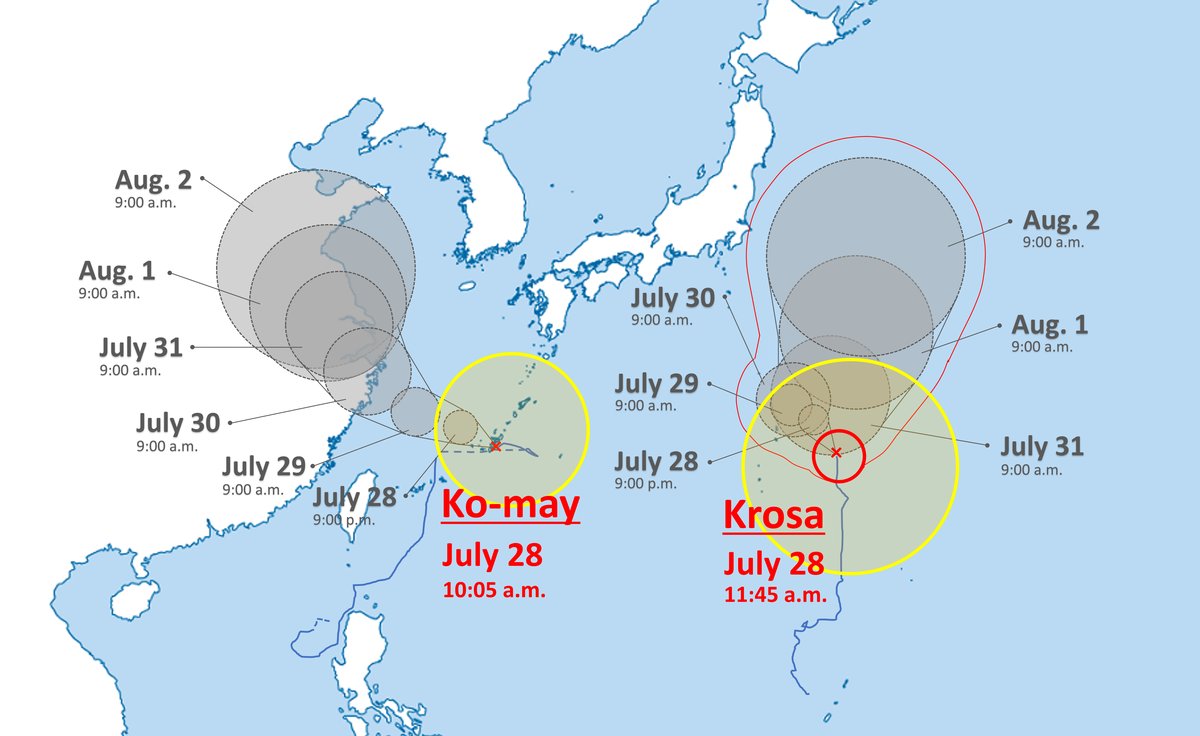 Double Typhoons Approaching Japan; One to Okinawa, Another to Ogasawara Islands